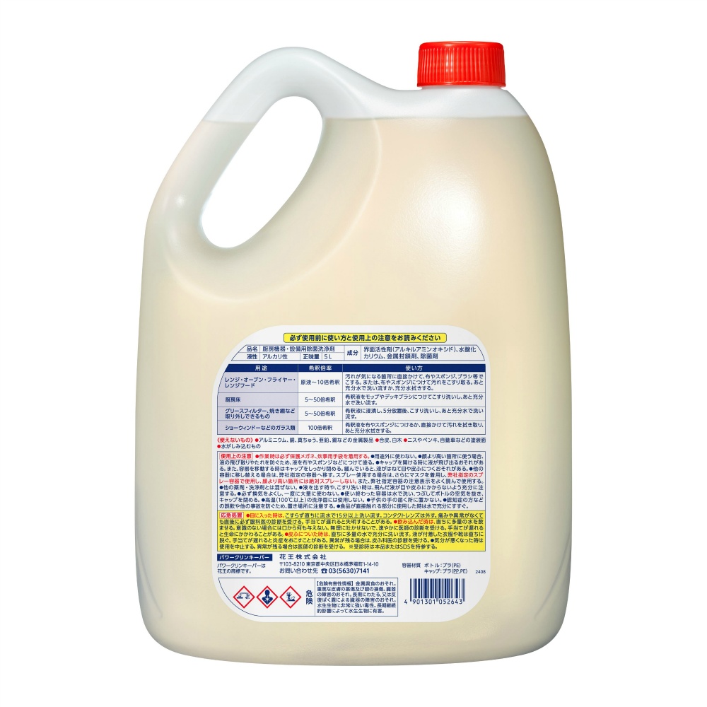 | 注意事項 | 使用上の注意 ●作業時は必ず保護メガネ、炊事用手袋を着用する。 ●用途外に使わない。 ●顔より高い箇所に使う場合、液の飛び散りやたれを防ぐため、液を布やスポンジなどにつけて塗る。 ●キャップを開ける時に液が飛び出るおそれがある。また、容器を移動する時はキャップをしっかり閉める。緩んでいると、液がはねて目や皮ふにつくおそれがある。 ●他の容器に移し替える場合は、弊社指定の容器へ移す。スプレー使用する場合は、さらにマスクを着用し、弊社指定のスプレー容器で使用し、顔より高い箇所には絶対スプレーしない。 【使用方法用途など】用途・使い方 ●レンジ、オーブン、フライヤー、レンジフードなどのこびりついた油汚れ落としに…汚れの程度により水で希釈(原液~10倍)し、洗浄 液を布やスポンジにつけて汚れをこすり取り、あとよく水で洗い流すか、充分水拭きする。 ★スプレー使用する場合は、さらにマスクを着用し、弊社指定のスプレー容器で使用し、顔より高い箇所には絶対スプレーしない。レンジフードなど顔より高い箇所は、洗浄液を布やスポンジなどにつけて使用する。 ●グリースフィルター、焼き網など取り外しできるものに…希釈液(5~50倍)に浸漬 【使用上の注意】使用上の注意 ●作業時は必ず保護メガネ、炊事用手袋を着用する。 ●用途外に使わない。 ●顔より高い箇所に使う場合、液の飛び散りやたれを防ぐため、液を布やスポンジなどにつけて塗る。 ●キャップを開ける時に液が飛び出るおそれがある。また、容器を移動する時はキャップをしっかり閉める。緩んでいると、液がはねて目や皮ふにつくおそれがある。 ●他の容器に移し替える場合は、弊社指定の容器へ移す。スプレー使用する場合は、さらにマスクを着用し、弊社指定のスプレー容器で使用し、顔より高い箇所には絶対スプレーしない。 |