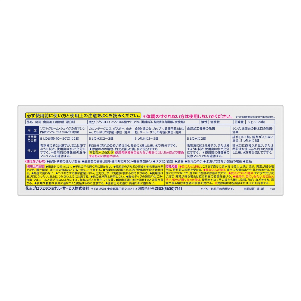 除菌タブレットハイター120錠入り業務用