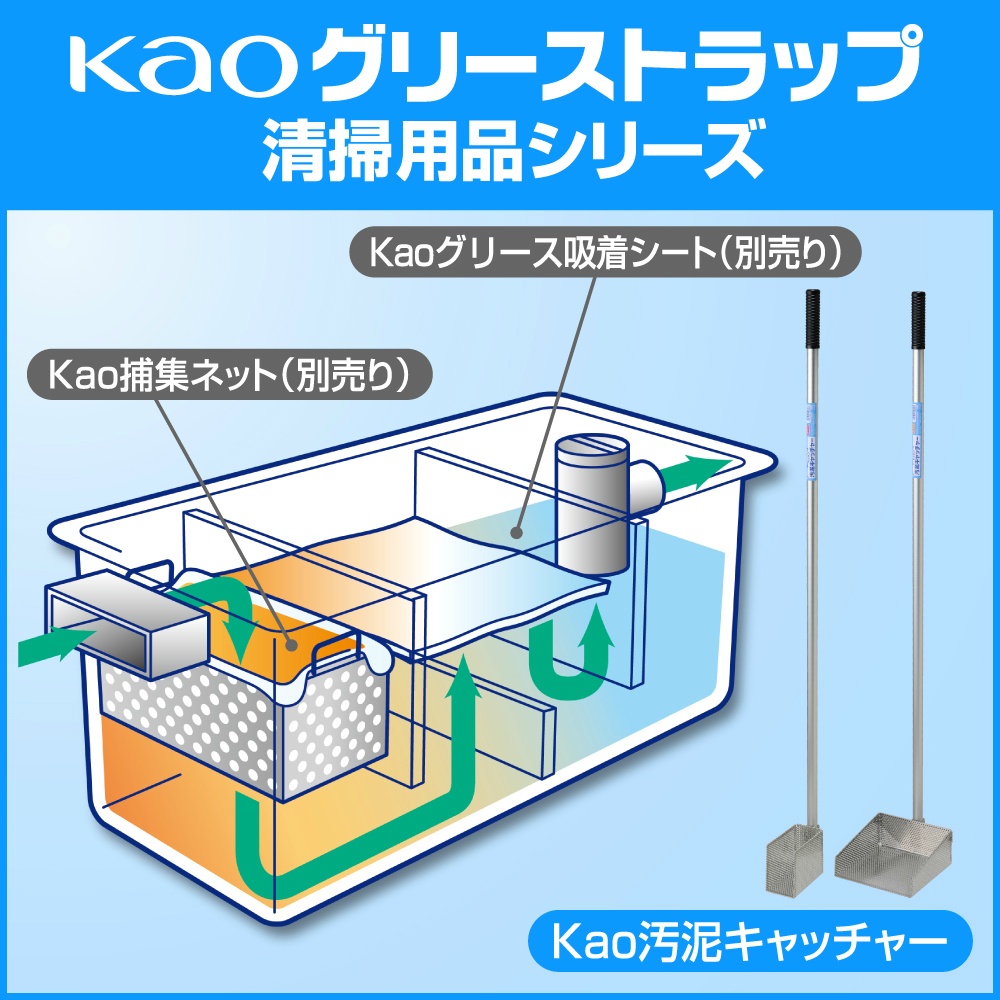 | 注意事項 | 使用上の注意 ●使用前に製品に不具合がないことを確認する。 ●溶接部が外れたりしている場合は使用しない。手などを傷つける原因となる。 ●用途外に使用しない。 ●強い衝撃を与えない。 ●使用後は早めに洗い水を切る。 【使用方法用途など】使い方 1、Kaoグリース吸着シート(別売り)とKao捕集ネット(別売り)を取り除く。 2、グリーストラップの底に沈んでいる汚泥をすくいとる。ヘッド部が角形のメッシュ構造なので、コーナー部分の汚泥もすっきり取れて水切りできます。 【使用上の注意】使用上の注意 ●使用前に製品に不具合がないことを確認する。 ●溶接部が外れたりしている場合は使用しない。手などを傷つける原因となる。 ●用途外に使用しない。 ●強い衝撃を与えない。 ●使用後は早めに洗い水を切る。 |