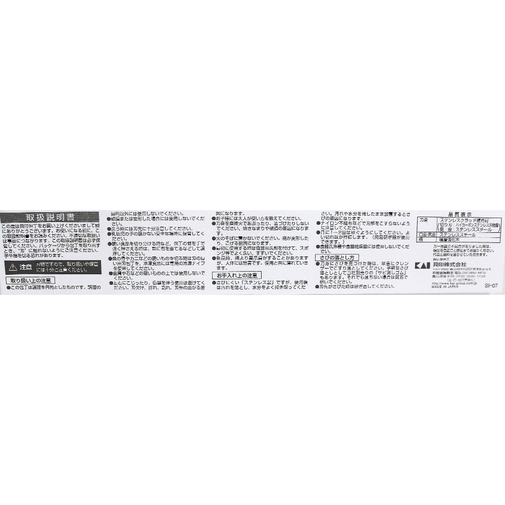 | 注意事項 | 包丁以外の目的に使用しないでください。 【使用上の注意】包丁以外の目的に使用しないでください。 【保管保存方法】乳幼児の手が届かない安全な場所に保管してください。 |