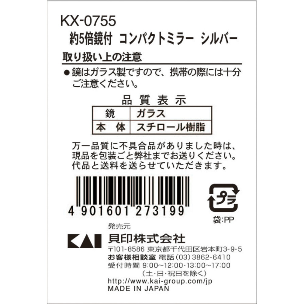 KX0755 約5倍拡大鏡付コンパクトミラー シルバー