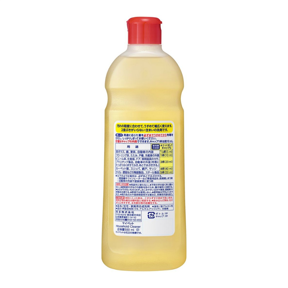| 注意事項 | 使用上の注意\n●用途外に使わない。\n●子供の手の届く所に置かない。\n●認知症の方などの誤飲を防ぐため、置き場所に注意する。\n●水ぶきできないもの(水がしみこみやすい白木や家具、壁紙等)や革製品は避ける。\n●原液では使用しない。\n●使用後は手をよく水で洗う。\n●荒れ性の方や長時間使用する場合は、炊事用手袋を使う。 【使用方法用途など】使い方 用途に応じた量を必ず水でうすめてから布等を\nひたし、しっかりしぼってお使いください。\n計量はキャップの内側でできます。キャップ1杯は約10 ml。\n\n用途\n\n使用量\nの目安\n水2 Lに対して\nキャップに\n\n窓ガラス、鏡、家具、自動車の内装\n1/2杯(5 ml)\n\nフローリング床、たたみ、戸棚、冷蔵庫の外側\n1杯(10 ml)\n\nビニール床、化粧板、ドア、照明器具のカサ、\nプラスチック製品、自動車の外装(布等に\nたっぷりふくませてふき、あとで水ぶきする。) \n2杯(20ml)\n\nカーペット類、スリッパ、網戸、サッシ\n4杯(40 ml)\n\nタイル・便器などの陶器製品、スチール製品\n5杯(50 ml)\n\n★以下のような場合は、必ずあとで水ぶきする。\n○扇風機やファンヒーターなど季節用品を、長期間しまう時\n○自動車の外装や塗装家具に使う時 【使用上の注意】使用上の注意\n●用途外に使わない。\n●子供の手の届く所に置かない。\n●認知症の方などの誤飲を防ぐため、置き場所に注意する。\n●水ぶきできないもの(水がしみこみやすい白木や家具、壁紙等)や革製品は避ける。\n●原液では使用しない。\n●使用後は手をよく水で洗う。\n●荒れ性の方や長時間使用する場合は、炊事用手袋を使う。 【保管保存方法】●子供の手の届く所に置かない。●認知症の方等の誤飲を防ぐため、置き場所に注意する。 |