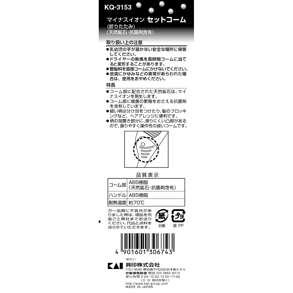 KQ3153 マイナスイオンセットコーム(折りたたみ)